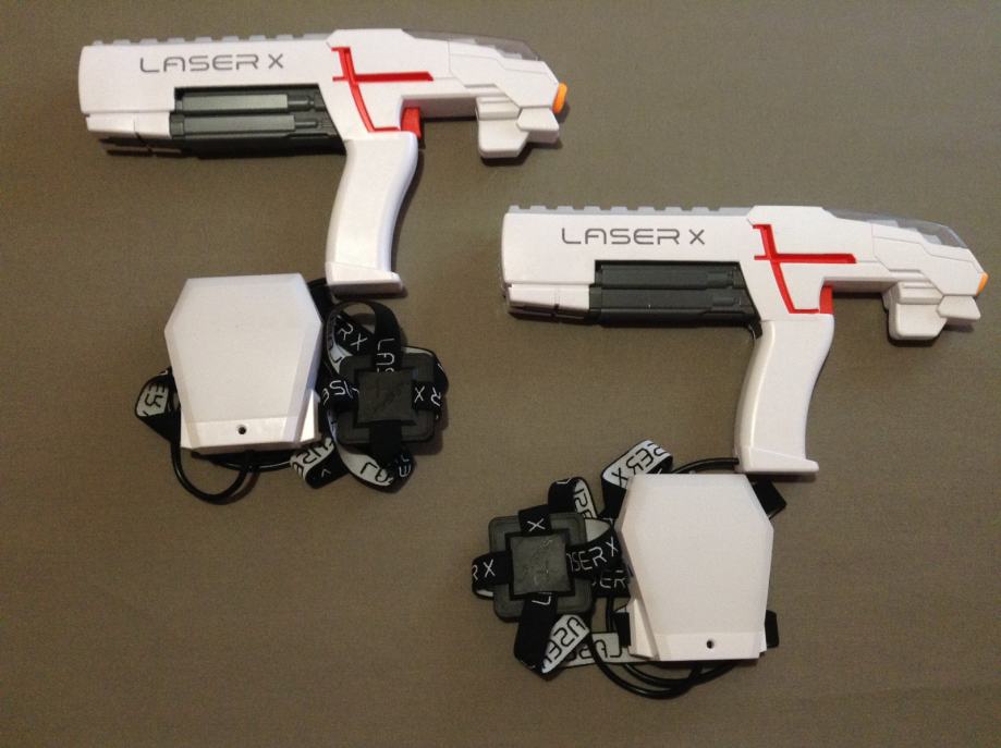 Laser-X set se sastoji od dva laserska pištolja dometa do 60 m.