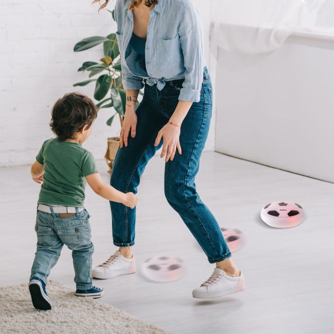 Kuglica lebdi iznad površine zahvaljujući prigušivaču zraka, što znači da se glatko kreće po podu bez oštećenja namještaja ili poda. Osim toga, ima rub meke pjene koji štiti noge i namještaj od udara, a istovremeno omogućuje sigurnu i bezbrižno.
