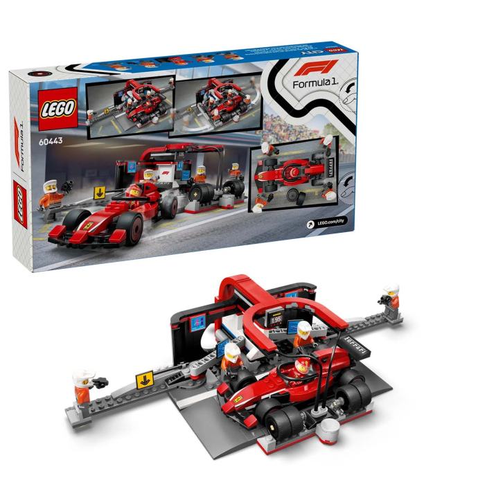 Opremi se za brzu akciju u boksu tima Ferrari u utrci F1! Okupi posadu u boksu i pozovi Ferrarijeva vozača, neka dojuri munjevitom brzinom. Pregledaj motor, pripremi nove glatke gume i zavrti kotače udarnim pištoljem da ih brzinski promijeniš. Izjuri iz boksa i nastavi se natjecati. Možda srušiš rekord za krug! Pripremi se za odlične pustolovine u boksu Formule 1 u LEGO Cityju!