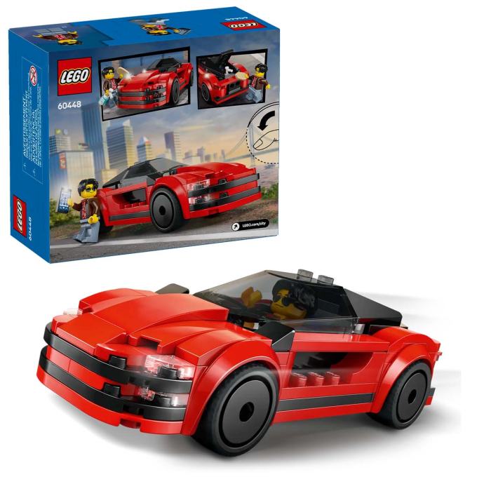 Provozaj se sa stilom u LEGO City Crvenom sportskom autu! Elegantni super automobil ima odlične naplatke, nisko profilne gume i zatamnjena stakla kabine za laganu vožnju s otvorenim krovom. Otvori prtljažnik pa spremi mobitel i pribor za čišćenje. Zatim sjedni za upravljač i kreni na brzu cestu. Ne može bolje!