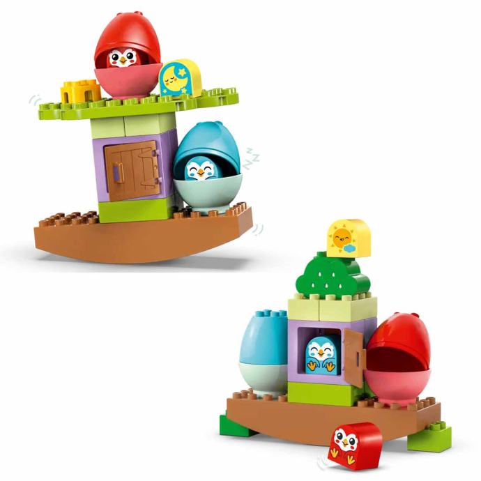 Djeca mogu istražiti zabavnu lelujavu kućicu na drvetu i sprijateljiti se sa slatkim malim sovama. Mališani trebaju zaključiti gdje da stave jaja kako bi postigli ravnotežu. Možda će shvatiti i da stablo može postati stabilno ako dodaju još pokoju kocku! Dok mališani upijaju razna znanja, pokažite im da, za razliku od njih, sove spavaju danju, a igraju se noću.