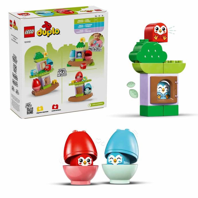 U setu: Lego kocke, 2 figure sova, 2 jaja koja se otvaraju na dodir i kućicom na drvetu s prozorom na šarkama.