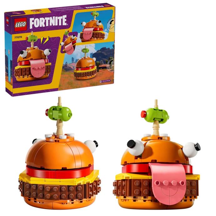 Uhvatila te glad za zabavom u stilu LEGO Fortnitea? Nahrani svoje kreativne motore i oživi legendarni lik iz videoigre u kompletu za slaganje LEGO Fortnite Durrr Burger! Čeka te gozba zabave i osjećaj uspjeha kada sastaviš model s prepoznatljivim očima i jezikom hamburgera te maslinom na čačkalici. Kad ga dovršiš, možeš ga izložiti i zadiviti prijatelje.
