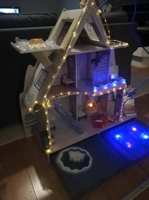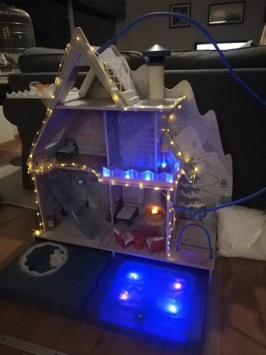 Sve atrakcije na kućici su u funkciji: rasvjeta, sjedežnica za skijaše, umjetni snijeg, klizalište, bazen - sve je tu!