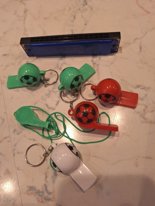 Prodajem LOT zviždaljki-6 komada i usna harmonika