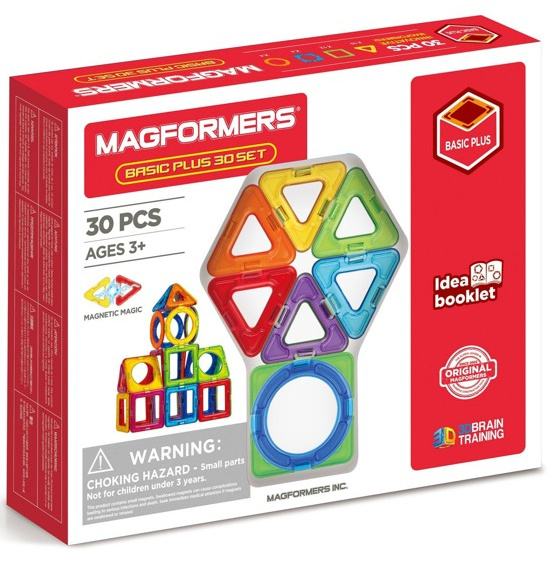 Create 3D structures from 2D nets with Magformers Basic Plus 30Pc Set. Add on to your Squares and Triangles, with new magnetic Circles, Square Inner Circle and Circle. Create houses, towers and our ‘magic ball’. Learn to build using combine, roll and pull-up techniques and see what your imagination can create!Build with 10 Rainbow magnetic Triangles, 12 Squares, 4 Square with inner circle shapes and 4 circles. Follow along with the step-by-step instructions and develop color and shape recognition, fine motor skills and problem-solving ability.The original and authentic Magformers. Perfect for brain development, critical thinking and STEM education. Follow the Step-by-step educational idea booklet for ideas and instructions. Each geometric shape contains magnets that never reject, so you’ll always hear the Magformers click. When playtime is over, use the magnetic power to simply stack and store.