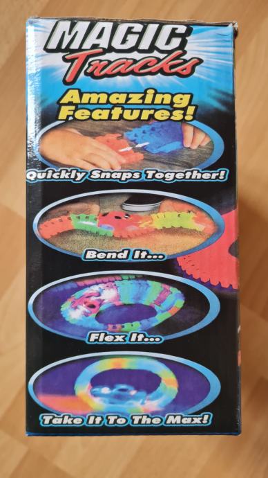 Autić pokreću 3 AAA baterije (nisu uključene) koji ima prednja svijeta te osvjetljuje neonsku stazu (fora je kada se staza pusti u mraku i pogon).