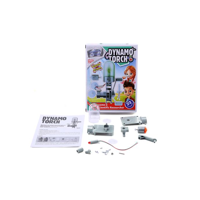 Kreativni STEM set za izradu DYNAMOVE svjetiljke. Komplet za vlastitu izradu dinamo lampe. Jednostavan za izradu i učenje. Pretvorite normalni motor igračke u generator koji pretvara pokrete ruku u električnu energiju i pokreće žarulju. Bez baterije, bez zagađenja. Generator se može koristiti kao svjetiljka za hitne slučajeve. Ovaj set je idealan za mlade ljubitelje znanosti i nudi vrijednu lekciju o transformativnoj moći znanosti. Zabavite se i učite u isto vrijeme!