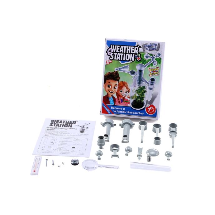 STEM set za djecu s pomoću kojeg mogu raditi zabavne pokuse sadnjom biljčice ili drveta u pvc bocu i proučavanjem faktora rasta: tla, vode, zraka, sunčeve svjetlosti i temperature potrebne za rast biljke ili promatrati i bilježiti vrijeme s vlastitom višenamjenskom meteorološkom stanicom. Set sadrži vjetrokaz, anemometar, termometar i kišomjer. Eksperimentirajte s efektom staklenika i stvorite terarij u boci.