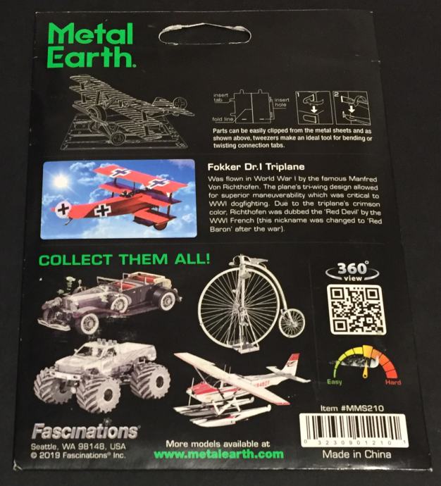 Metalni model trokrilnog aviona iz I. svjetskog rata za sastavljanje bez ljepila.