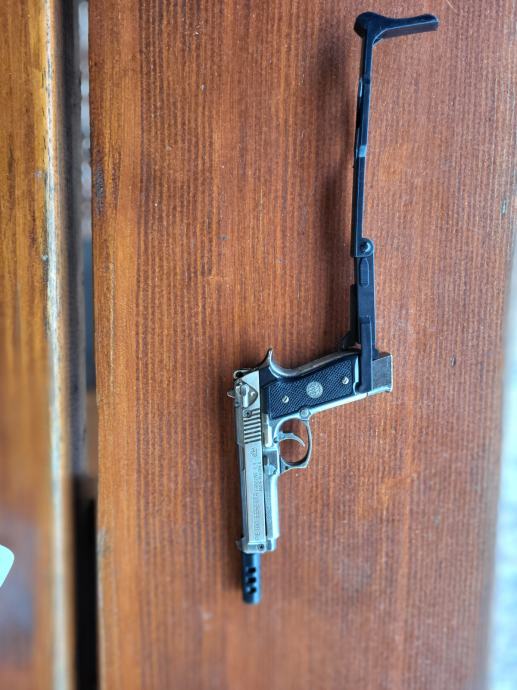 Model se repetira, ima šaržer sa mecima i vjerna je i umanjena kopija originalne slavne Berette M93R i kompletno je napravljena od metala