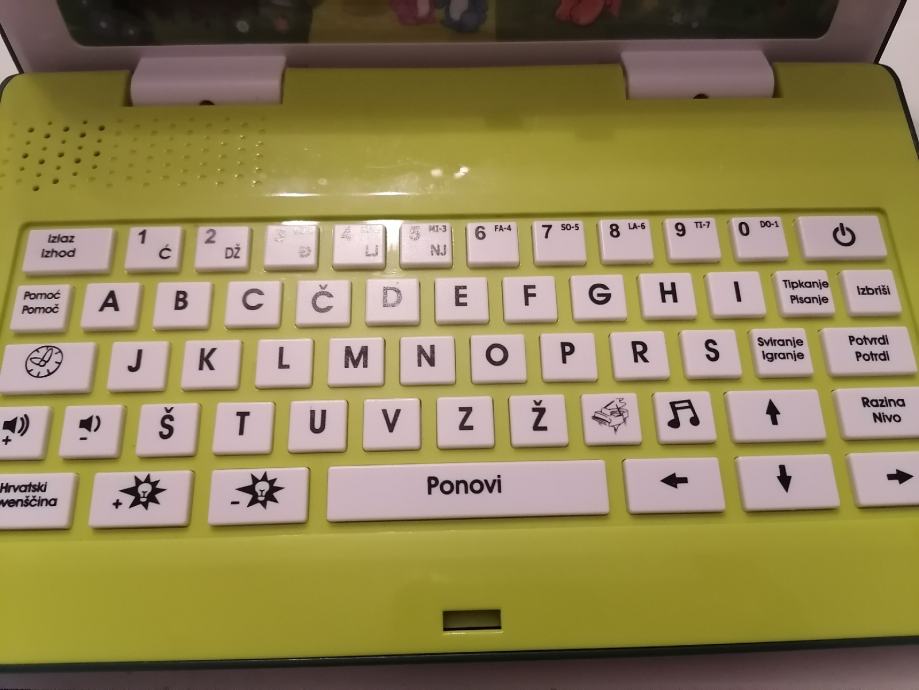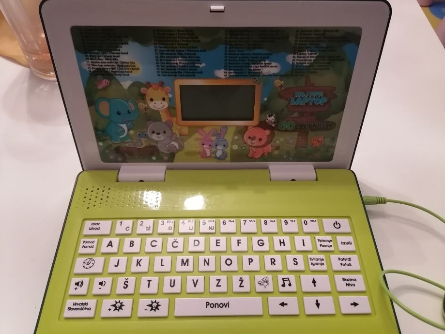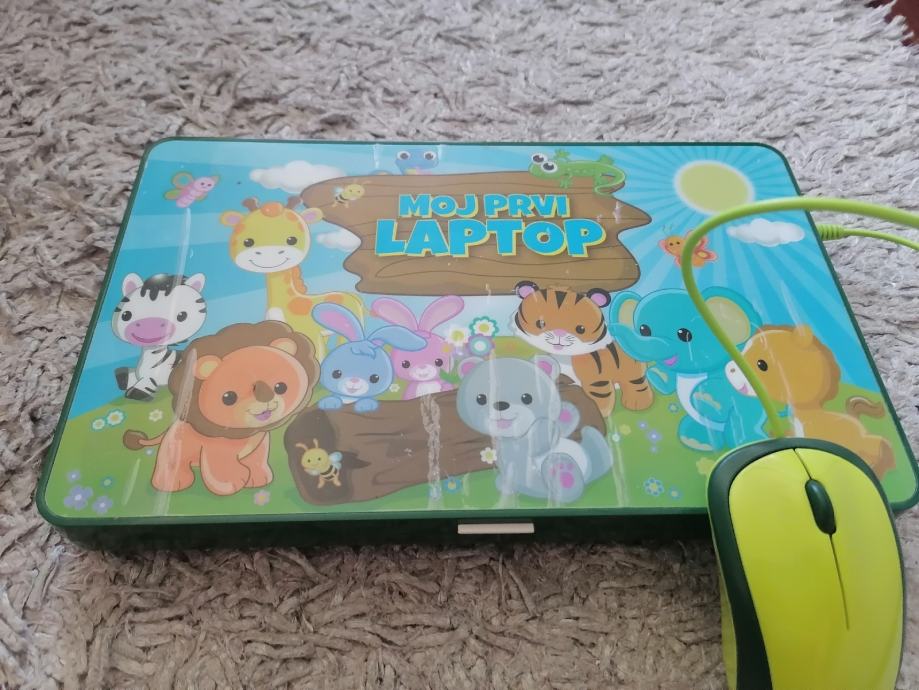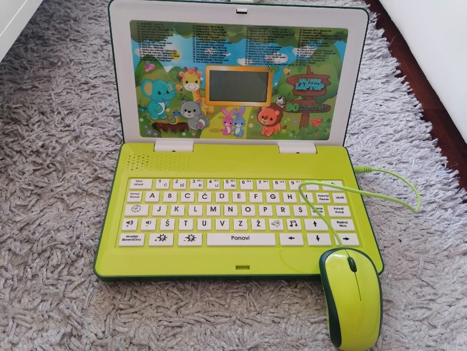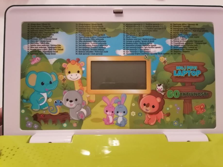 Dječji laptop sa 60tak funkcija u svrhu početnog učenja slova, brojeva, i sl. Vrlo interaktivno i poticajno za djecu.