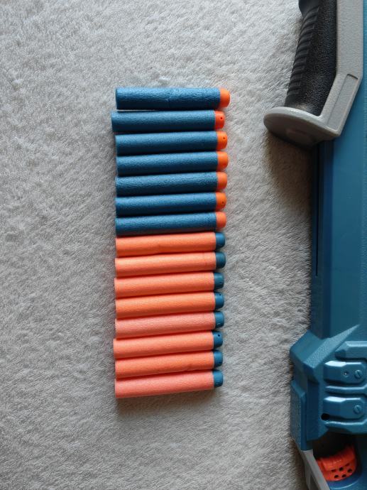 Uključuje 16 službenih NERF strelica, 8 strelica za punjenje u blaster i 8 strelica za ponovno punjenje.