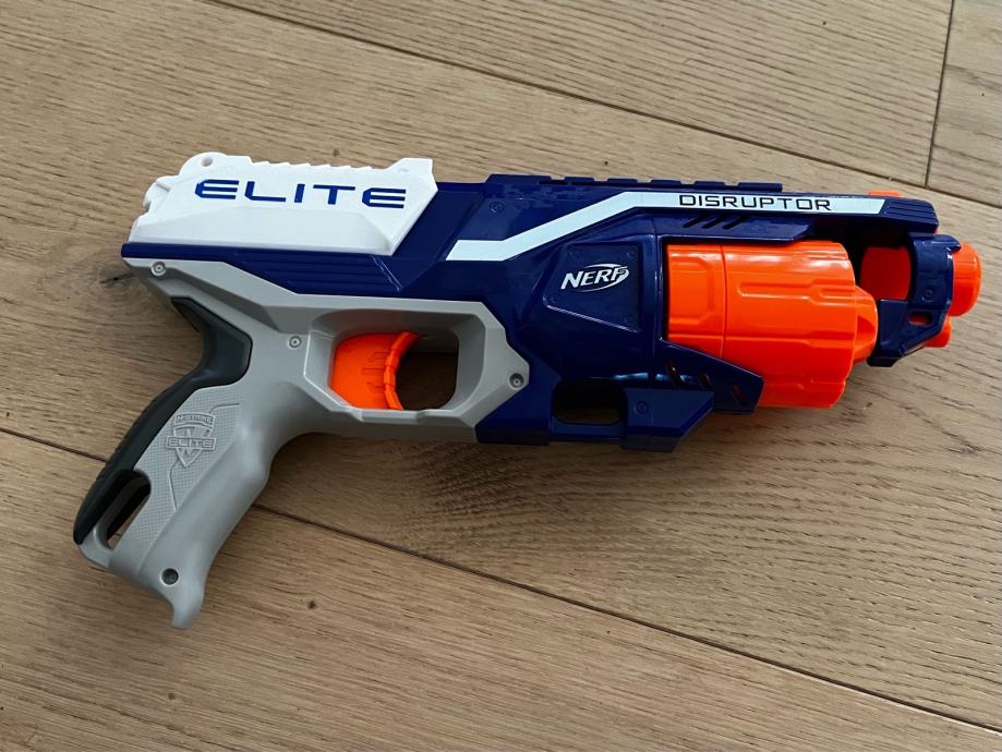 Nerf pištolj 32 cm velik, model Elite Disruptor, plavi sa 6 cijevi, poluautomatik