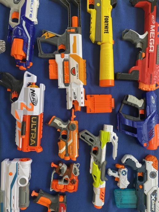 Prodajem cijeli komplet nerf puški i pištolja te 2 Xshot-a za 30 €.