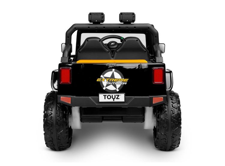 Ringo je terensko vozilo na baterije inspirirano kultnim Jeepom Wranglerom . Njegov neobičan izgled svidjet će se malim vozačima koji sanjaju o svladavanju teških prepreka. Terensku vožnju olakšavaju 4 snažna motora koji pokreću svaki kotač zasebno, udaljenost od tla od 18 centimetara i gume od 30 centimetara s velikim profilom od Kotači od visokokvalitetne EVA pjene . Udobnost vožnje osiguravaju amortizeri na stražnjoj osovini, udobno sjedalo presvučeno eko kožom i glazbena ploča s bluetoothom i usb-om. Lakirana karoserija ovog modela povećava estetsku vrijednost, a večernju vožnju uljepšat će prednje LED svjetlo i 2 prednja svjetla postavljena na prečku. Uvlačive stepenice olakšavaju ulazak manje djece, a njihovu vožnju može kontrolirati roditelj daljinskim upravljačem. Uz nekoliko izmjena, roditelj može koristiti Ringo zajedno sa svojim djetetom!