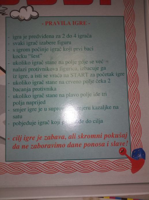 Mogu se igrati četiri igrača, a svaki dobije figuricu i baca kocku. Ovisno o broju, zauzima polja na ploči, a start je u okolici Hrvatske Kostajnice. Ako igrač stane na protivničko polje, izbacuje ga se iz igre. Uz mjesta kojima je prolazila hrvatska vojska, ucrtani su tenkovi, neprijateljski vojnici, ali i hrvatski vojnici koji su prikazani kao veći, jači i opasniji od neprijateljskih. Pobjednik igre je onaj koji prvi uspije doći do Knina.