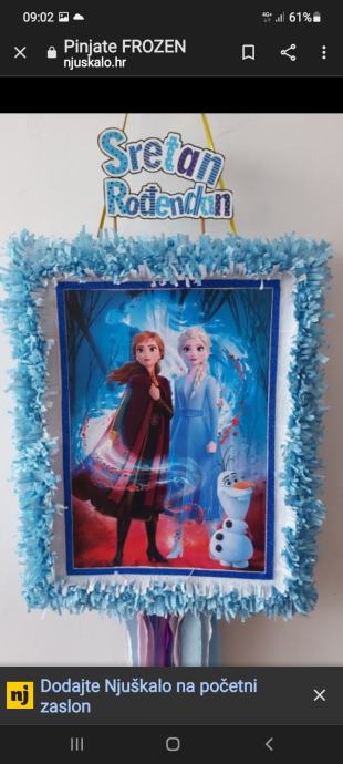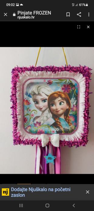 Prodajem pinjate Frozen ⁸sa raznim slikama.Pinjata je na potezanje.Uz pinjatu dobivate I dječje zagonetke za dodatnu zabavu.Cijena 15 €.