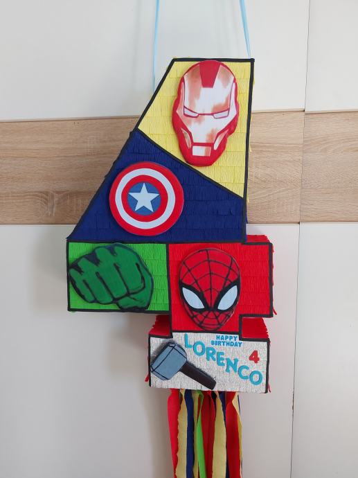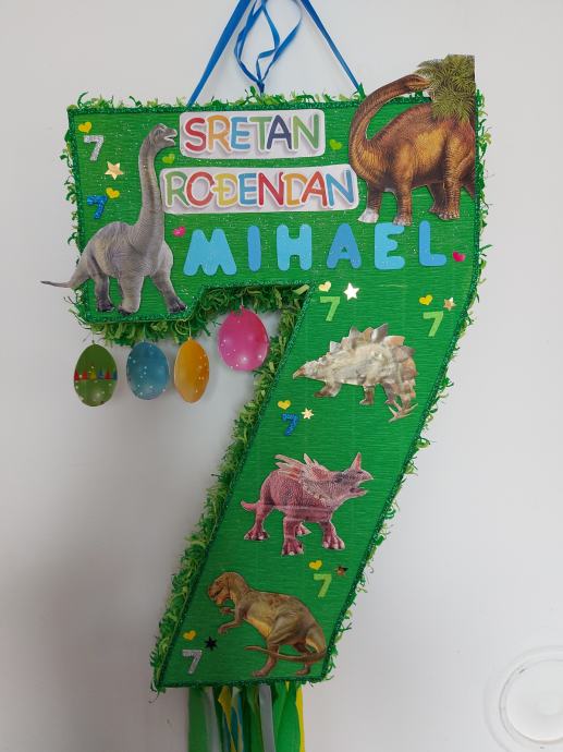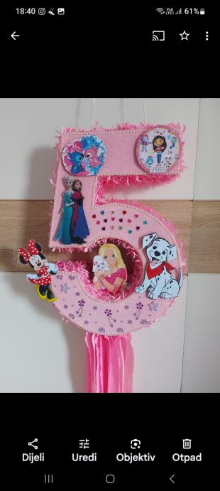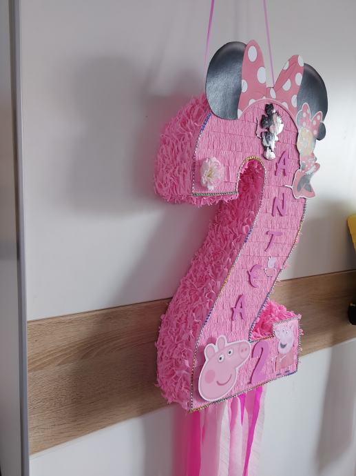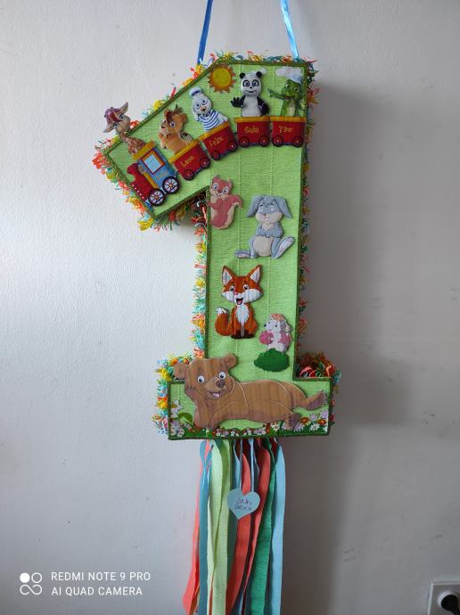 Prodajem pinjatu broj(svi brojevi) sa likovima koje Vaše dijete voli.Pinjata je na potezanje ,izrađena iz kvalitetnog Talijanskog krep papira.Nakon proslave može biti kao ukras u dječjoj sobi.Uz pinjatu dobivate i dječje zagonetke za dodatnu zabavu.Ako Vas nešto zanima slobodno nazovite,bez obzira na kupnju.
