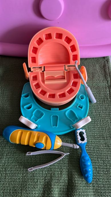 Zubarski set , maneken, brusilica , pincete , četkica , set za izradu zubi .