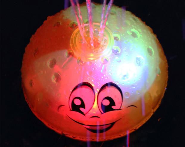Lopta se, kada se uroni u vodu, automatski aktivira i stvara mini fontanu. Voda koja prska popraćena je šarenim svjetlima koja se mijenjaju. Dodatna atrakcija su izbočine na lopti koje imitiraju kapljice vode. Nejednaka tekstura potiče dijete da malim ručicama ispituje površinu igračke.
