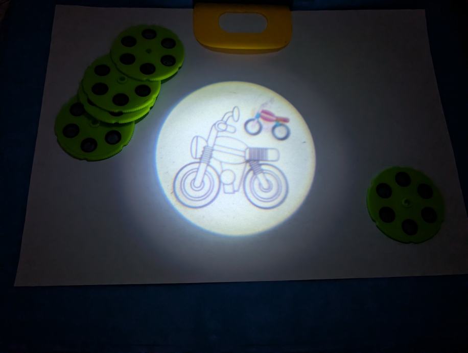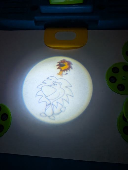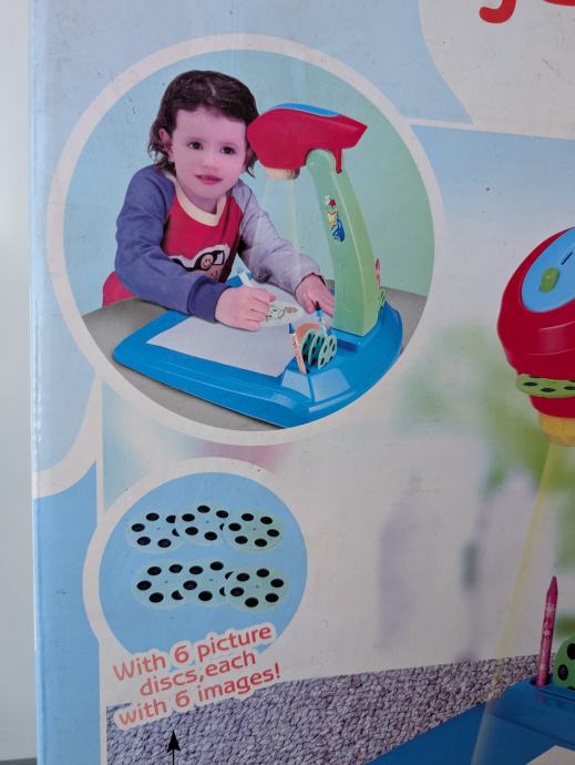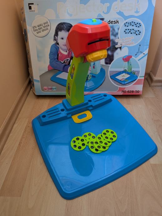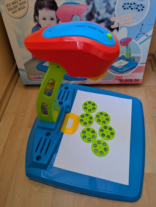 Projektor za crtanje, super igračka za djecu, sadrži postolje i projektor sa svjetlom, 6 diskova sa slikama, svaki ima po 6 različitih slika za crtanje, neke su uslikane (molim vidjeti slike).