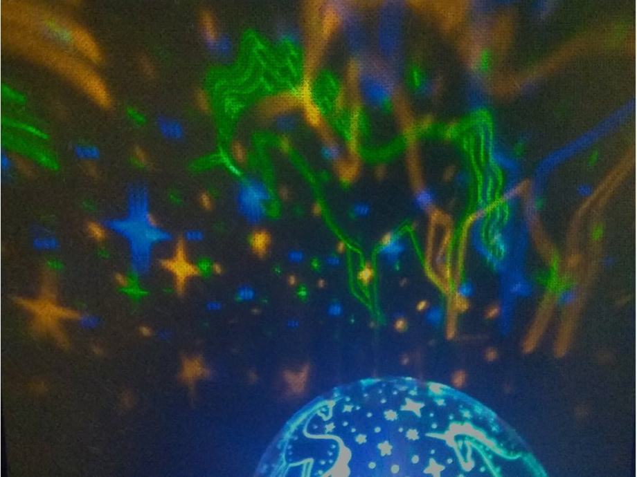 Svjetiljka stvara nevjerojatne uzorke na zidovima, prozorima (jednorog, zvijezde, mjesec).