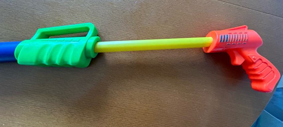 Puška je za malo veću djecu zbog veličine i potrebne snage da se puška napuni.