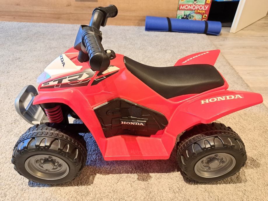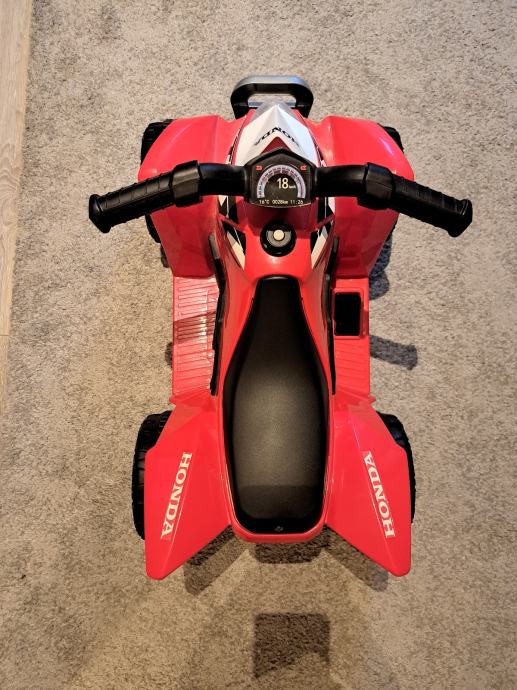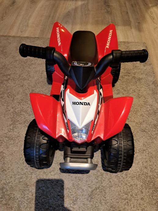 Vozilo Quad Honda ATV je replika poznatog modela Honda TRX 250X. Quad je opremljen prednjim svjetlom, velikim širokim kotačima s off-road profilom i papučicom snage zahvaljujući mladom vozaču koji može voziti brzinom od 3 km/h.