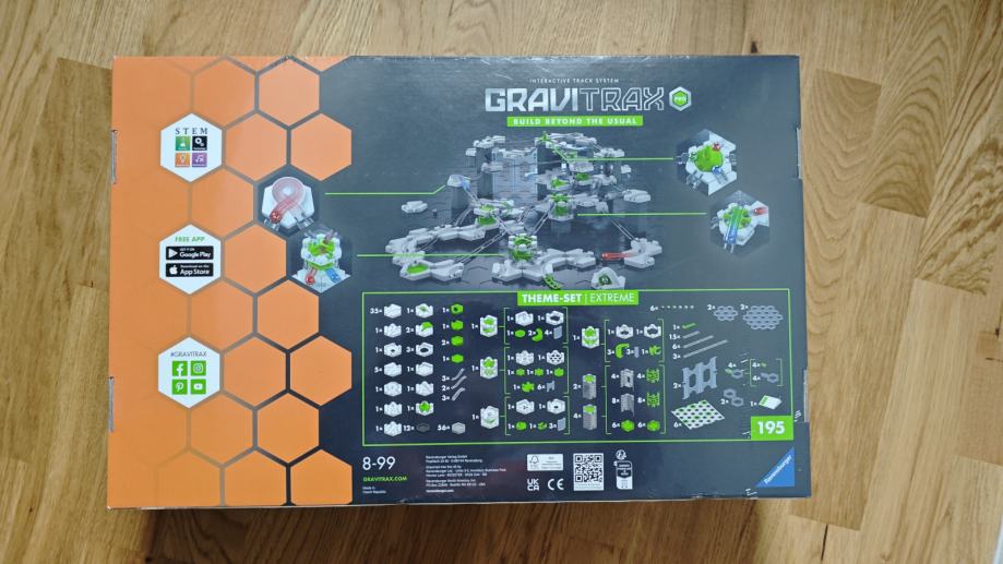 Više izazova, više mogućnosti, više zabave! Extreme Starter Set potiče izgradnju nevjerojatno uzbudljivih i složenih staza. Četiri akcijske kockice iz PRO serije, kada se kombiniraju, stvaraju potpuno nove mogućnosti. Optimalna kombinacija klasičnih Ravensburger GraviTrax kockica i vertikalnih elemenata u ovom setu nudi i nove izazove i veću fleksibilnost u gradnji. Kako se četiri akcijske kockice mogu kombinirati na najekstremniji način?