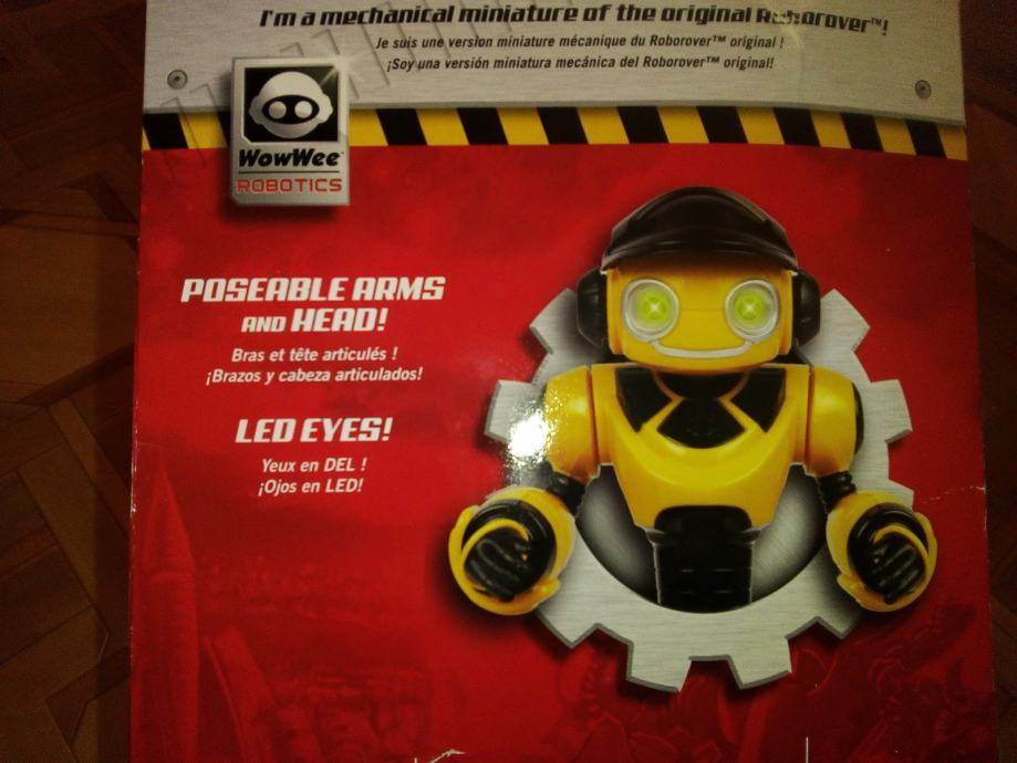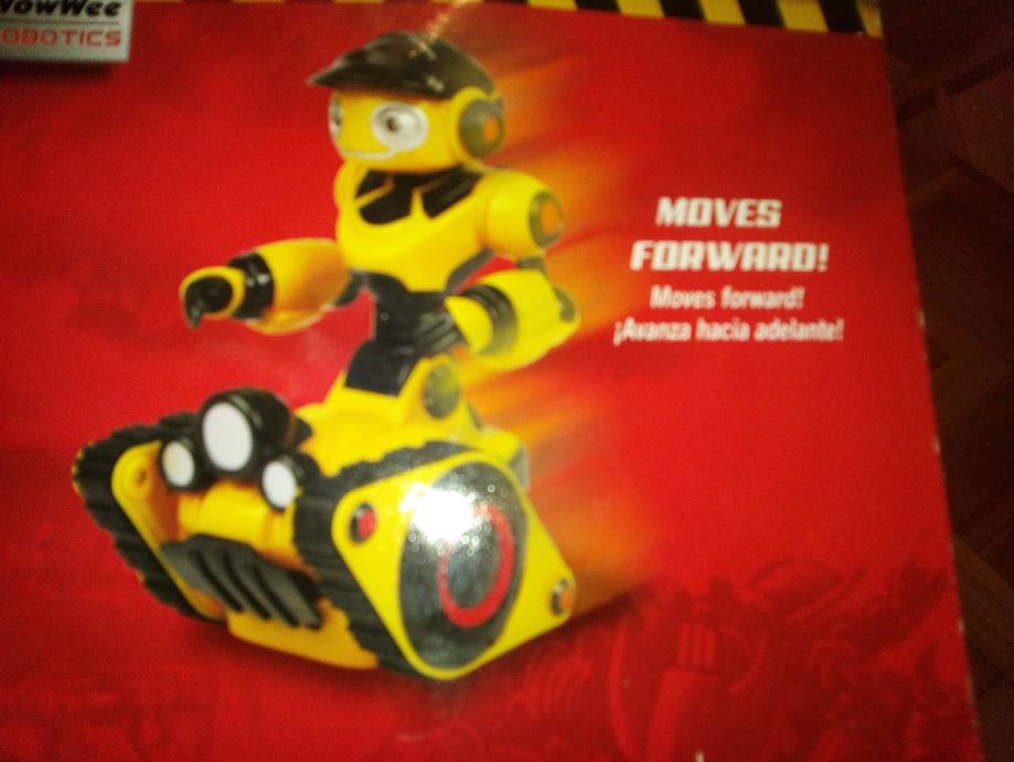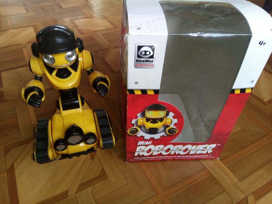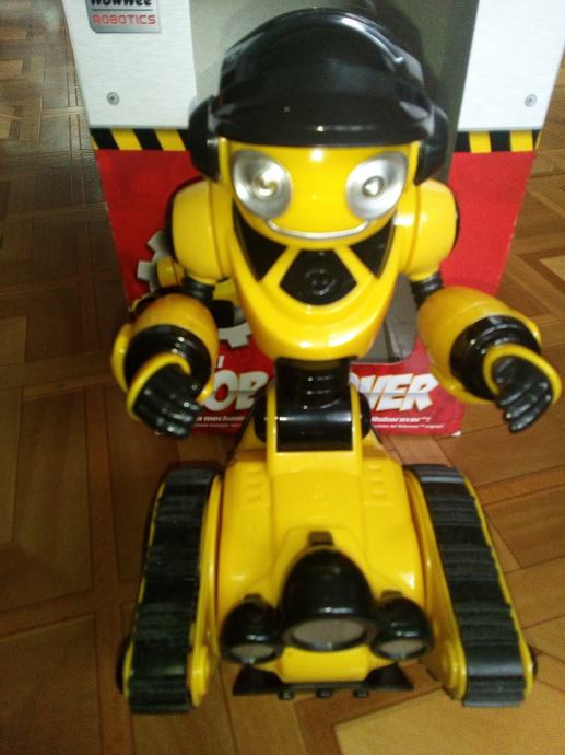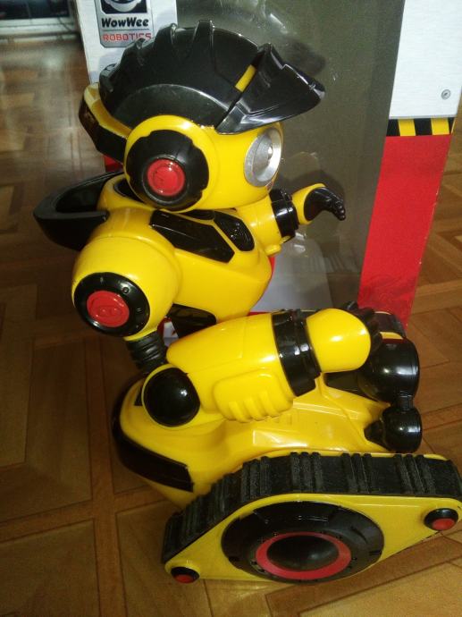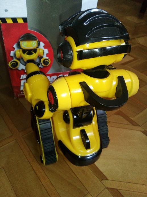 Robot na baterije, kreće se prema naprijed, pomična glava i ruke, oči svijetle. Bez oštečenja, ispravan. U kutiji. Visina 20cm.