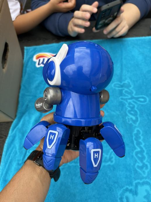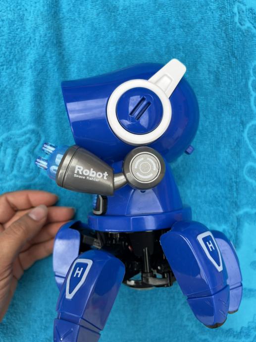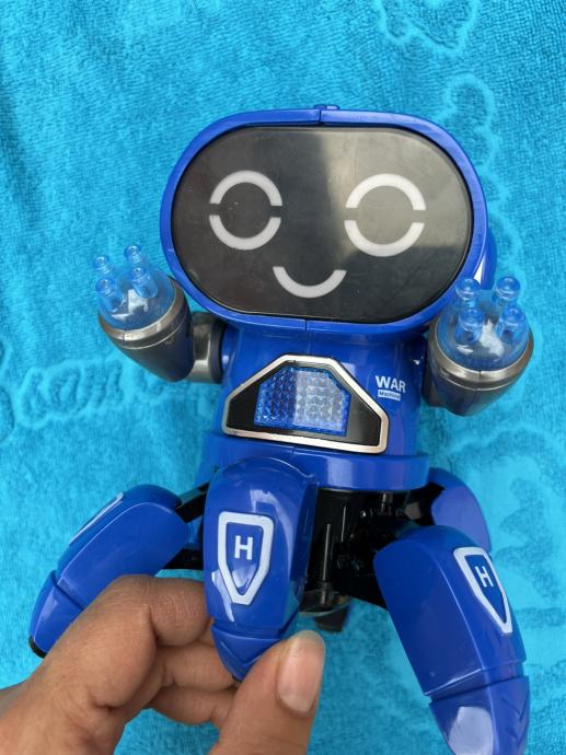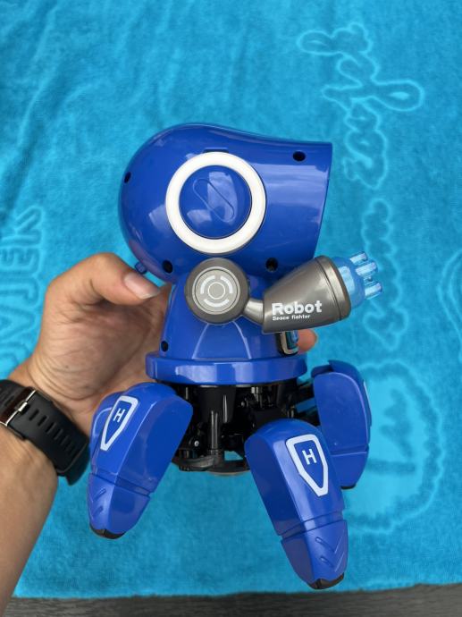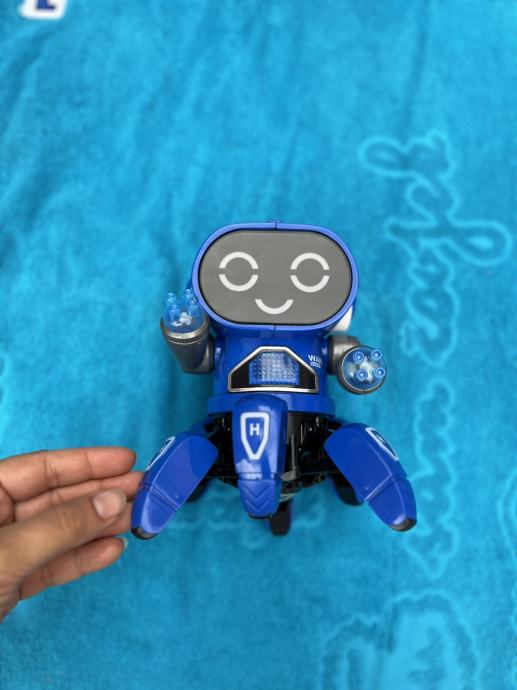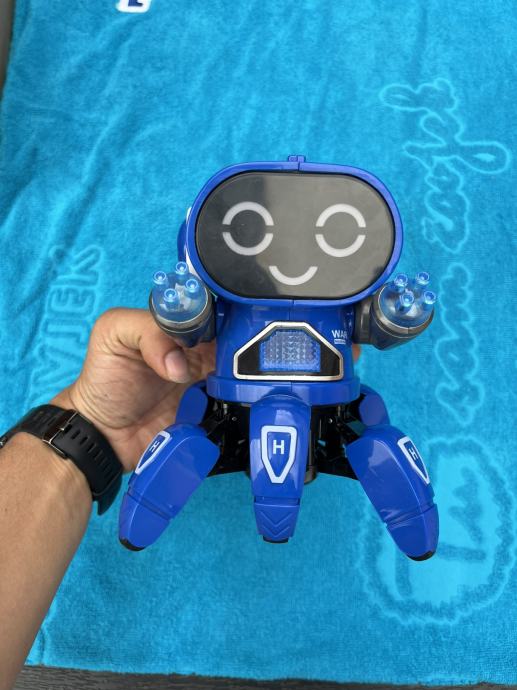 Robot s muzikom koji pleše, svijetli, pleše, svira. Radi na baterije (nisu uključene). Samo isproban da li radi. Otprilike 17 x 12 cm