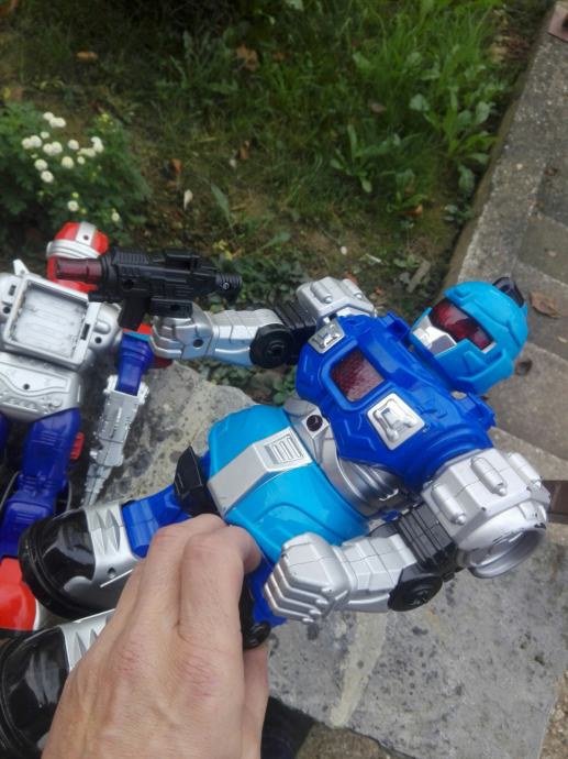 Igračka plastični robot 2kom. Ništa nije potrgano ni izgrebano. Sva svjetla rade, Fali poklopac od baterija na oba robota. Oba zajedno za 40€. Na sms nemogu odgovoriti, najbolje bi bilo da nazovete 099 687 5657 ili pošaljete poruku preko Njuškala.