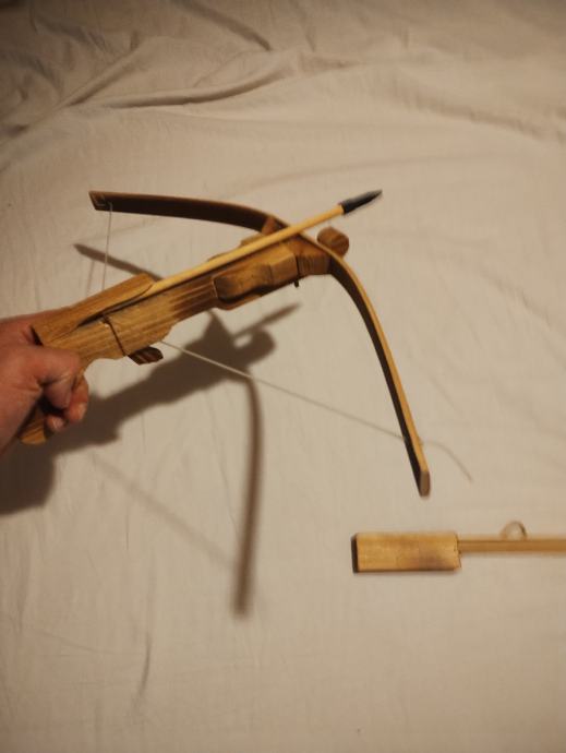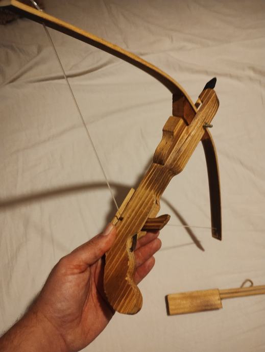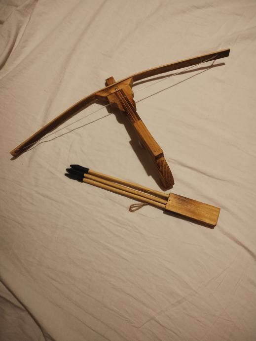 Dječji drveni samostrel i 3 strijele sa futrolom, tupi plastični vrhovi