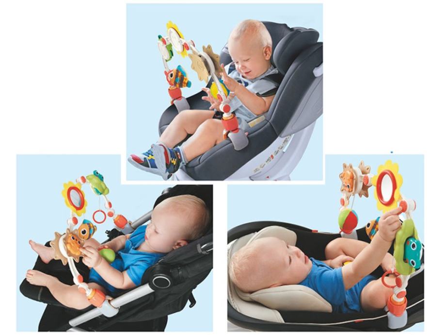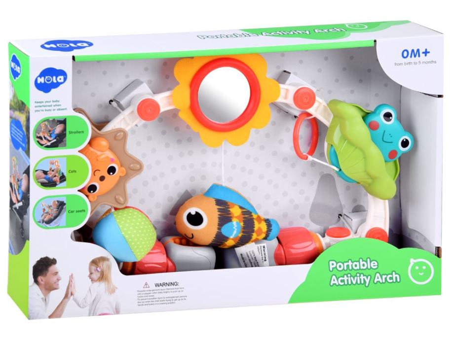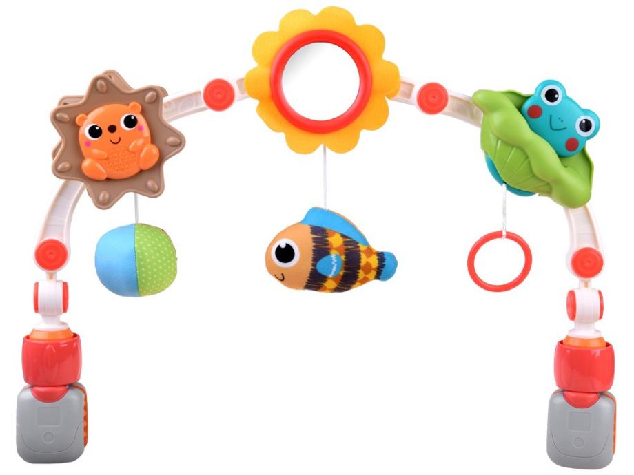 Igračka se vrlo jednostavno sastavlja, a podešavanjem kuta nagiba omogućit će ju prilagođavanje potrebama svakog djeteta. Igračke obješene na luk svakoj će bebi omogućiti razvoj motorike, preciznih pokreta i osjetila. Igračka potiče hvatanje i povlačenje ruku, razvija sposobnost fokusiranja pažnje, oblikuje djetetovu maštu. Uči razlikovati oblike i boje. Ima univerzalni držač koji osigurava montažu bez problema.