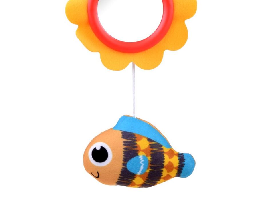 - žuto sunce sa ogledalom, u kojem će beba moći biti zanima ga njegov odraz, a mekana, materijalna ribica sa cvrčanjem iznutra pričvršćena na konac