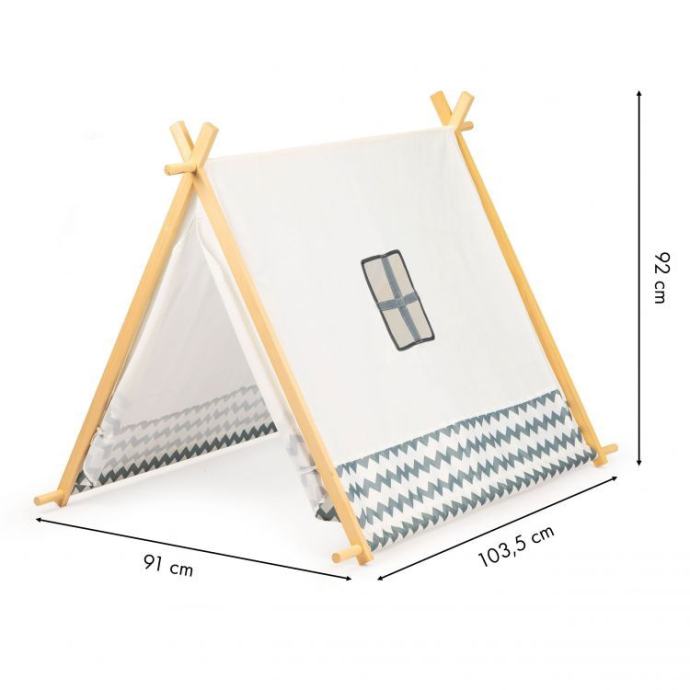 Šator je izrađen od poliesterskog materijala. Konstrukcija šatora izrađena je od drveta. Uzorci na šatoru podsjećaju na indijanski stil. Ulaz ima dvije zavjese, a sa strane šatora nalazi se mali prozor.