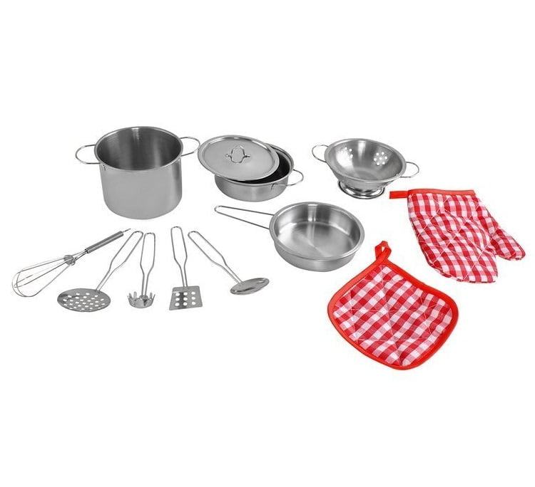Skup od 13 dječjih metalnih posuda i dodataka za kuhanje odličan je način za poticanje mašte i kreativnosti vašeg djeteta. Pored toga, igra u kuhinji pomoći će razvijati motoričke sposobnosti, logično razmišljanje i socijalne vještine.