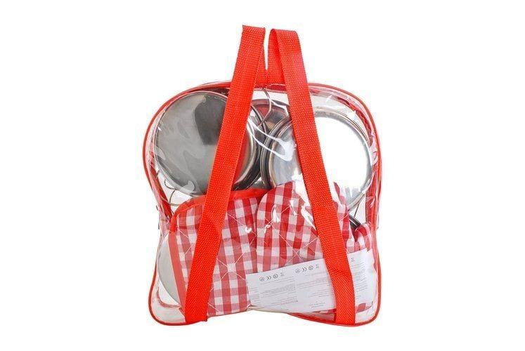 13 predmeta -Skup sadrži 13 elemenata, tako da sve što malom kuharu treba: 2 lonca, tava, cjedilo, poklopac (odgovara svakom loncu), skup različitih žlica, ruksaka i materijala za rukavice.