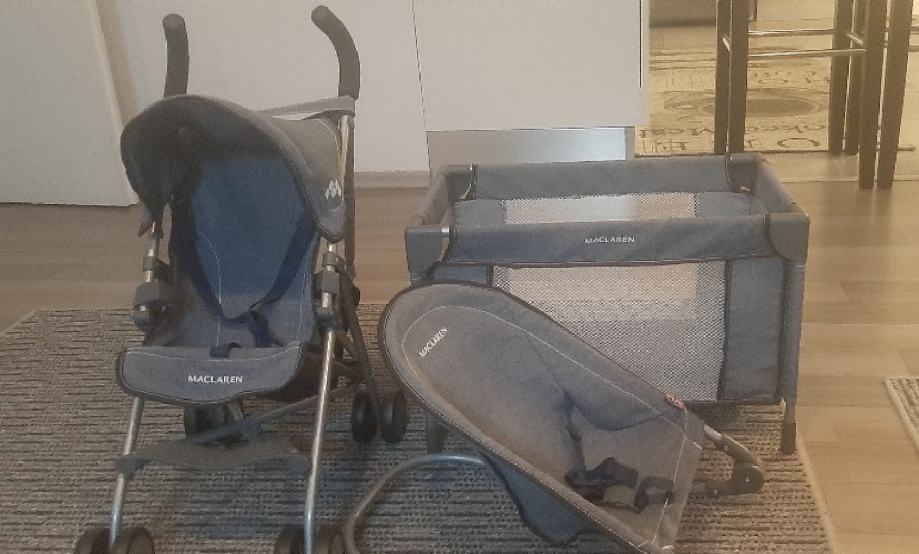 Prodajem Maclaren set za lutke: kolica,krevetić i ležaljka. Uz to također dolazi i torbica. Kratko korišteno,isključivo u kući. Samo osobno preuzimanje.