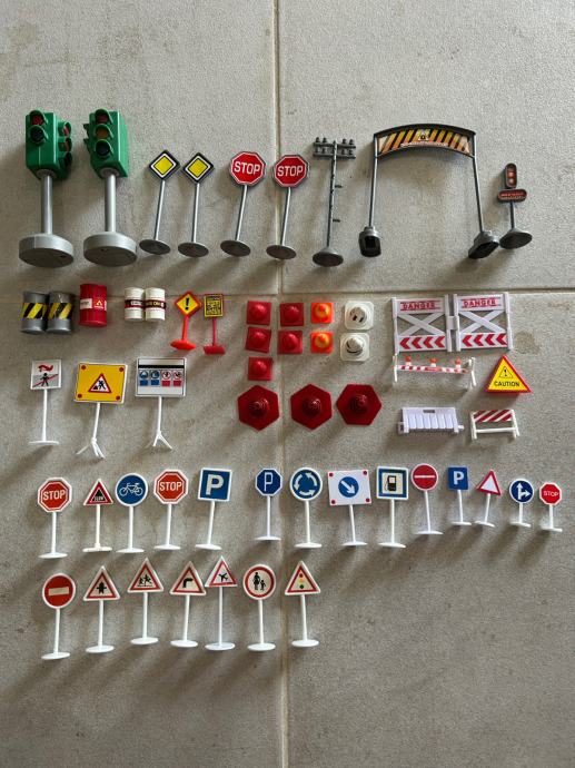 Set prometnih znakova, u kompletu sve što je na slici. Semaforima se može staviti nova baterija, sad ne svijetle. Korišteno, dobro očuvano.