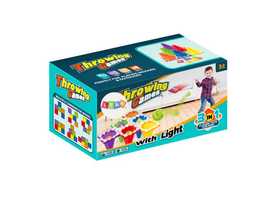 Set sportske igre spretnosti 3 u 1 je svestrani set koji pruža puno aktivne i kreativne zabave kako kod kuće tako iu dvorištu. Sastoji se od čunjeva koji služe kao meta i tri različita predmeta za bacanje: obruča, vreće i lopte. Zahvaljujući toj raznolikosti, set omogućuje mnoge oblike igre, od klasičnih igara vještina do izmišljanja vlastitih izazova i zadataka.