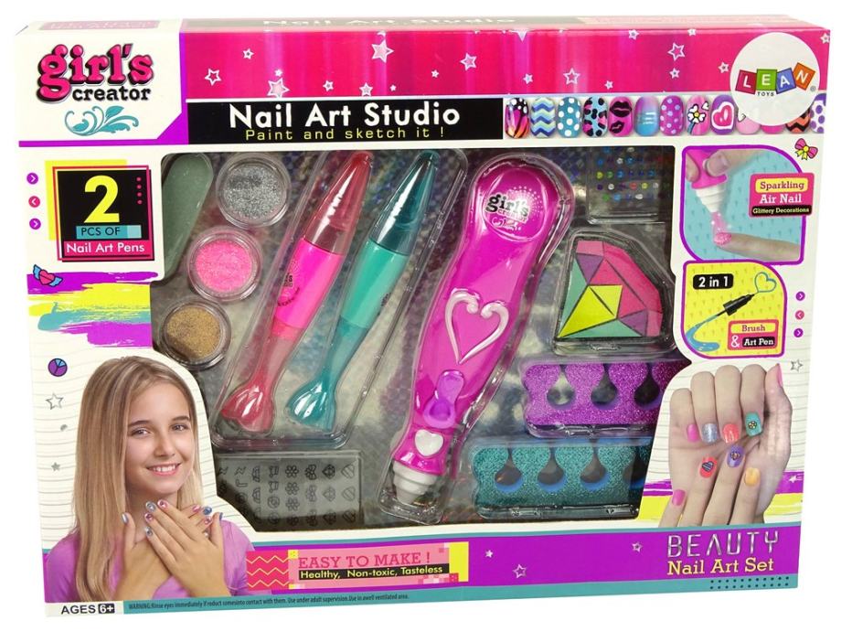 Zahvaljujući ovim dodacima stvorit ćete originalan dizajn na svojim noktima, lak se vrlo brzo suši, tako da možete brzo uživati u lijepim noktima. Lakovi koji se nalaze u setu izrađeni su od zdravih, neškodljivih i netoksičnih tvari, tako da neće naštetiti noktima djevojčica.