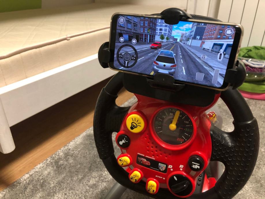 Smoby pilot aplikacija za iPhone ili Android telefone ili bilo koja druga igra simulacije vožnje koja koristi žiroskop telefona za skretanje u zavojima.