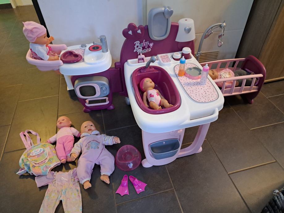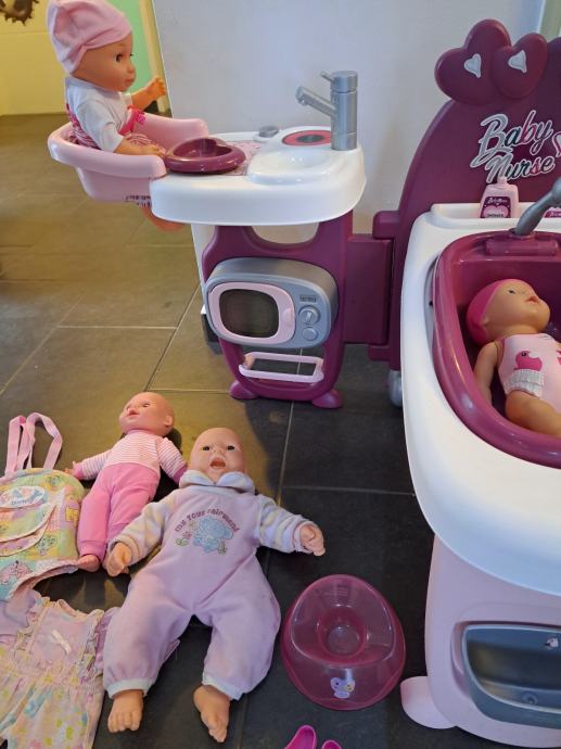 Prodaje se Smoby set za lutke, u odlicnome stanju, zajedno sa 5 lutkica, 2 su Baby Born, jedna je sa zvukovima. U kompletu dolazi i jos mnostvo opreme, nosiljka za bebe, bocice... Samo osobno preuzimanje.