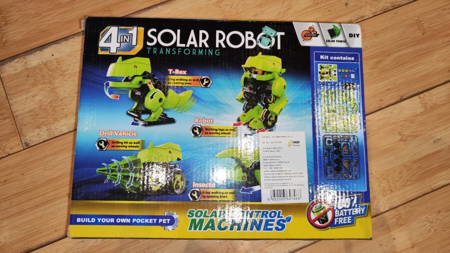 Solarni robot 4u1 kreativna je igračka za samostalno sklapanje. Robota pokreće sunčeva svjetlost i uči te kako koristiti sunčevu energiju. Izvrsna je zabava tijekom koje djeca uče kako svjetlosna energija pokreće električni pogon.