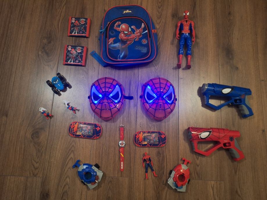 -slika 8- sat NOVI-baterije prilozene,novcanik,igra spiderman 10cm i mali spiderman sve skupa 8e