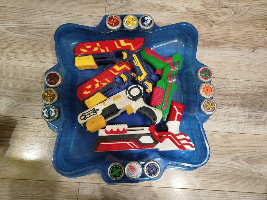 Sadrži više pištolja i velik broj zvrkova – puno dodataka, nije osnovni set.