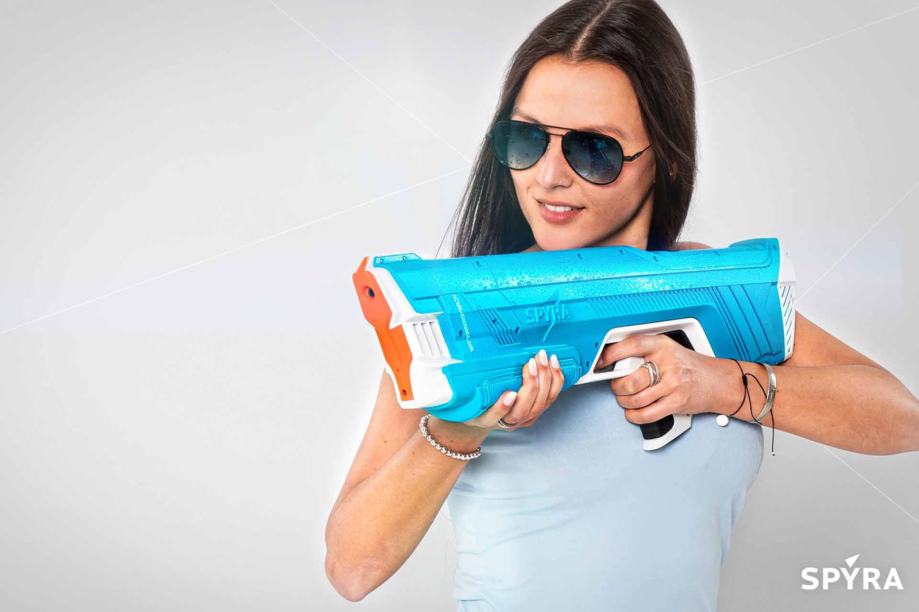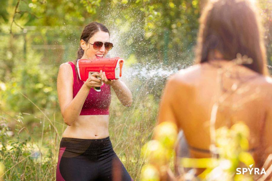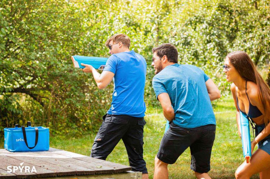 Prodajem dva SpyraTwo pištolja na vodu u plavoj i crvenoj boji.