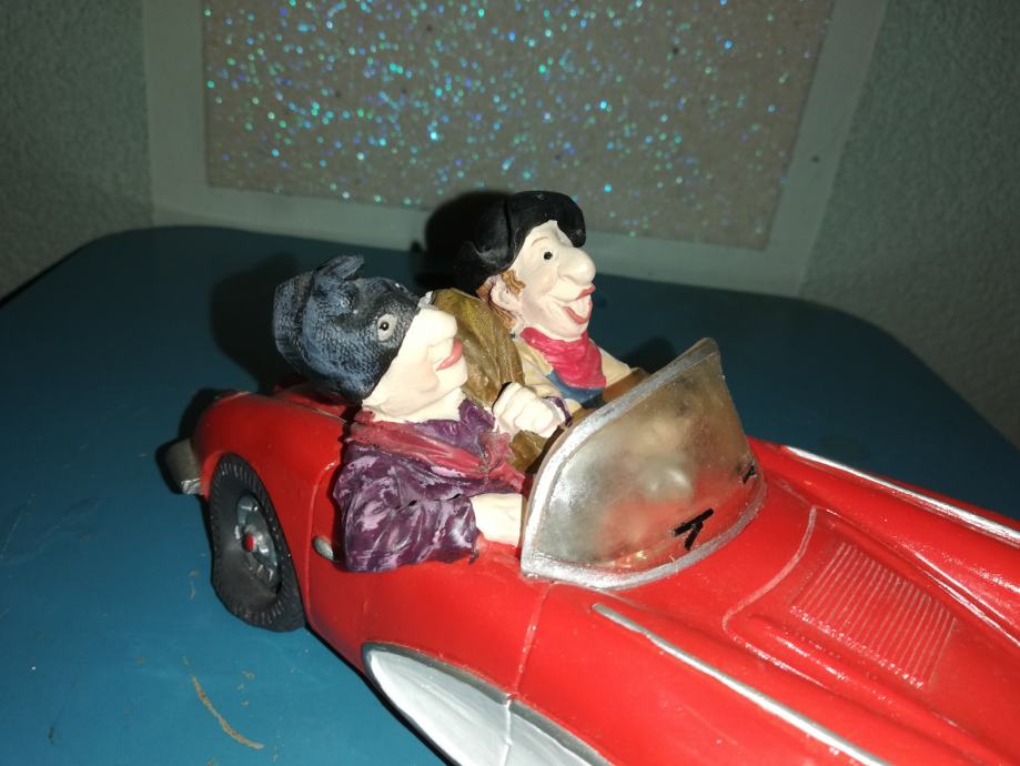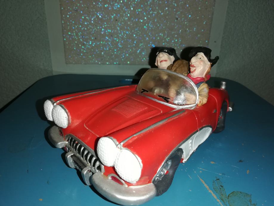 Stara kasica, 2 pljačkaša u autu, kasica od tvrde plastike, sačuvano u originalnoj ambalaži.
